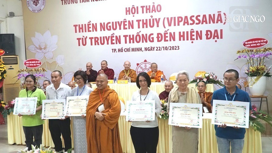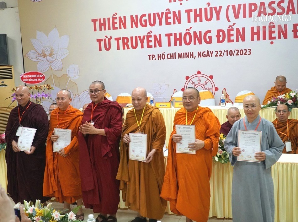 Dịp này, Viện Nghiên cứu Phật học VN, Trung tâm Nghiên cứu và Ứng dụng Thiền học Nam Truyền đã tặng Bằng tuyên dương công đức, Bằng công đức đến các tập thể và cá nhân có những đóng góp cho sự thành công của hội thảo.