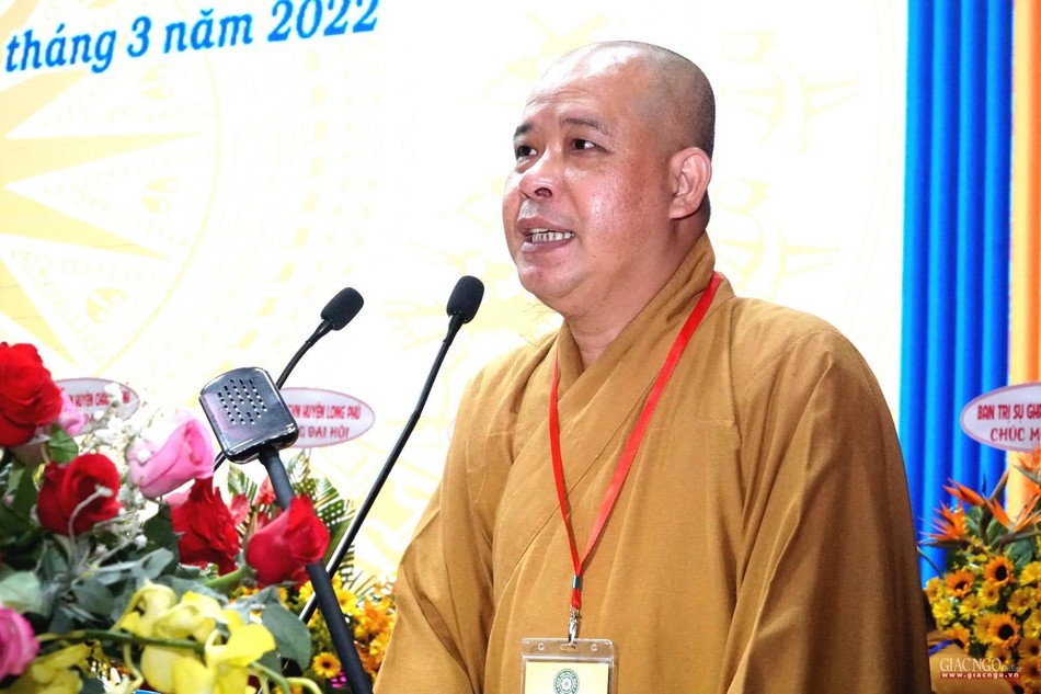 Đại đức Thích Thiện Nguyện báo cáo tổng kết công tác Phật sự và trình phương hướng hoạt động Phật sự nhiệm kỳ 2022-2027 |