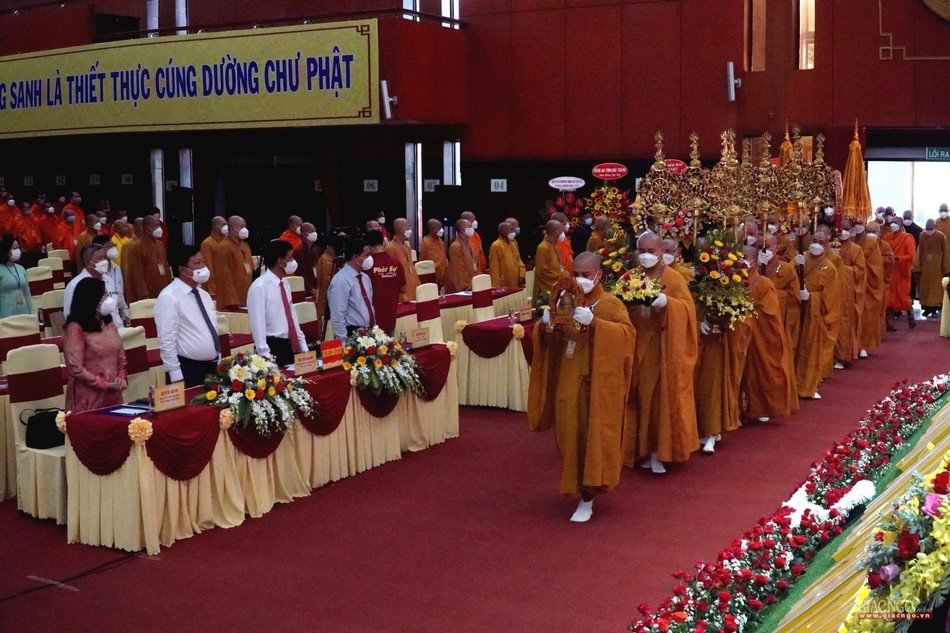 Sau nghi thức chào Quốc kỳ, Đạo kỳ, Ban Tổ chức cung thỉnh chư tôn đức Ban Chứng minh, Chủ tọa đoàn, Ban Kiểm soát, Ban Thư ký Đại hội; Ban Kiểm soát báo cáo thẩm tra tư cách đại biểu và thông qua nội quy đại hội.