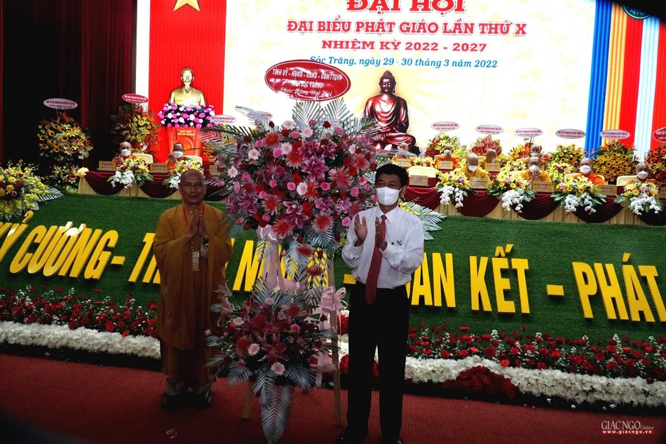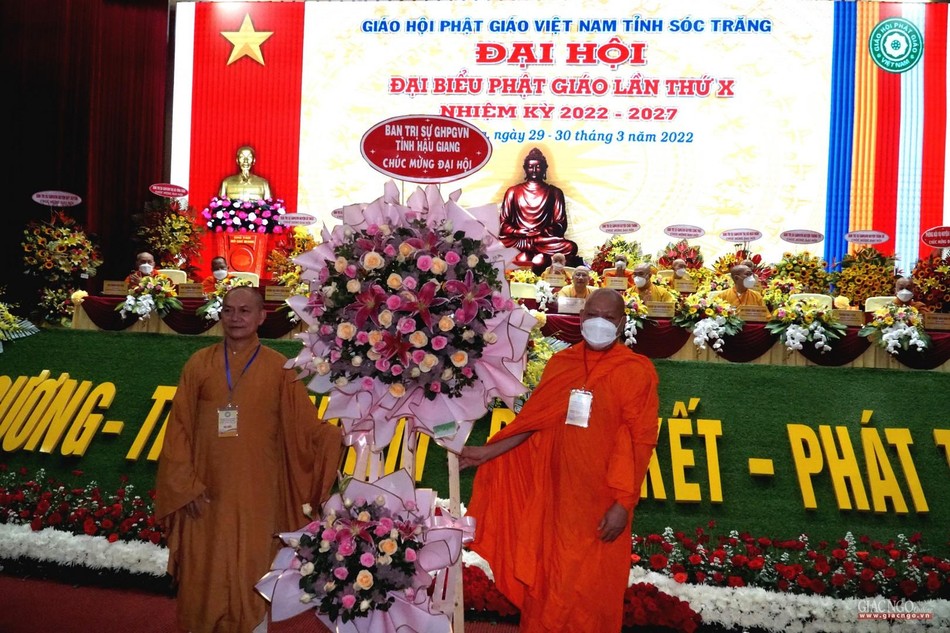 Nhiều lẵng hoa và quà đã được chư tôn đức và lãnh đạo các cấp chính quyền gởi đến chúc mừng đại hội cũng như trao tặng chúc mừng tân Ban Trị sự Phật giáo tỉnh Sóc Trăng nhiệm kỳ mới.