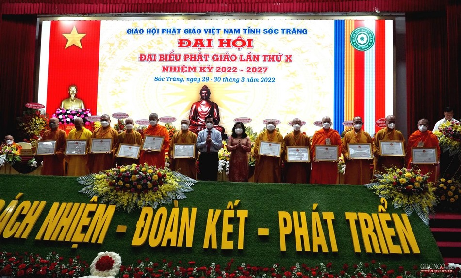 Ghi nhận đóng góp của chư tôn đức nhiệm kỳ qua, GHPGVN tặng Bằng tuyên dương công đức đến Ban Trị sự GHPGVN tỉnh; Ủy ban Nhân dân tỉnh và Ủy ban MTTQVN tỉnh tặng Bằng khen đến Ban Trị sự tỉnh và cá nhân.