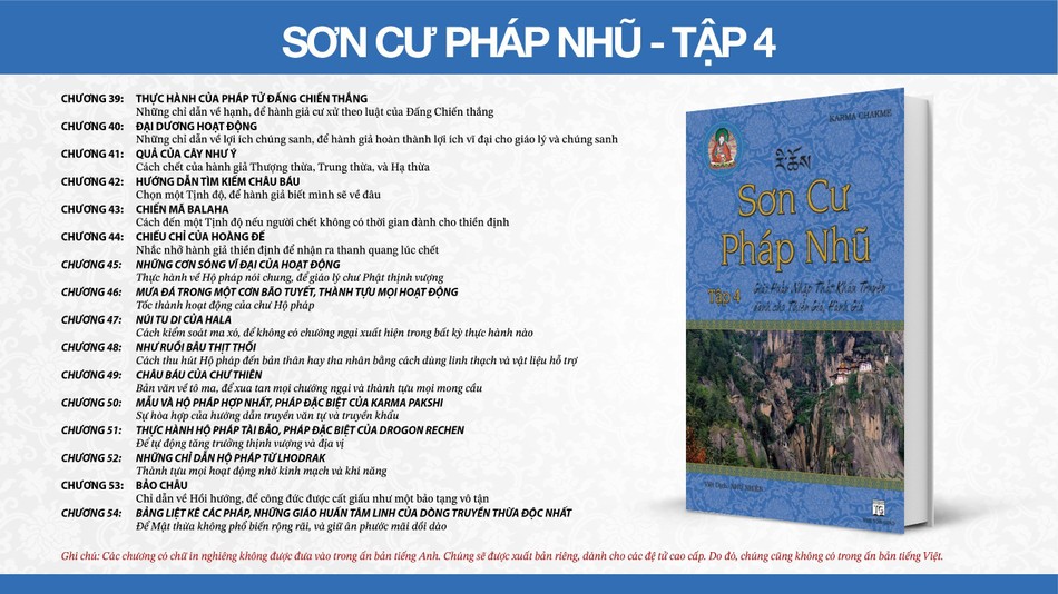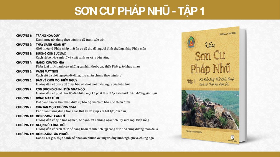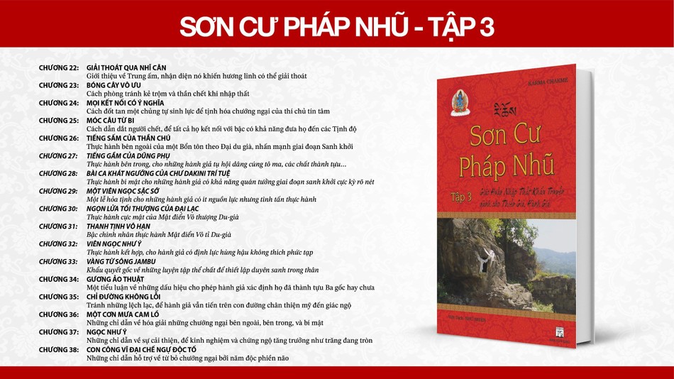 Những gì chúng ta gọi là Phật quả không gì khác hơn là sự hiển lộ hoàn toàn những phẩm tính bẩm sinh của chính chúng ta mà chúng thì vốn luôn hiện hữu trong chúng ta. “Phật” không phải là cái gì ngoài chúng ta. Chừng nào chúng ta chưa khám phá Phật tánh bên trong của chúng ta, chừng đó chúng ta vẫn xem “Phật” ở bên ngoài vì chúng ta chưa kinh nghiệm “Phật” như cái gì ở ngay bên trong chúng ta. Cuốn sách này, Sơn cư Pháp nhũ - Giáo huấn nhập thất khẩu truyền dành cho Thiền giả, Hành giả của ngài Karma Chakme liên quan đến mỗi giai đoạn và mỗi chi tiết của tiến trình khám phá Phật tánh của chúng ta. Nó mô tả cách tiêu trừ mỗi loại chướng ngại bất định và các chướng ngại khác mà bằng mọi cách che giấu hay ngăn cản nhận diện ra chúng.