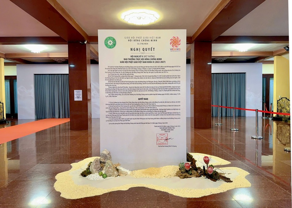 Ban Trị sự GHPGVN TP.HCM đã thực hiện, chuẩn bị không gian sẵn sàng cho việc cung thỉnh, tôn trí và chiêm bái xá-lợi Trái tim Bồ-tát Thích Quảng Đức trong Đại lễ Vesak Liên Hiệp Quốc 2025 |