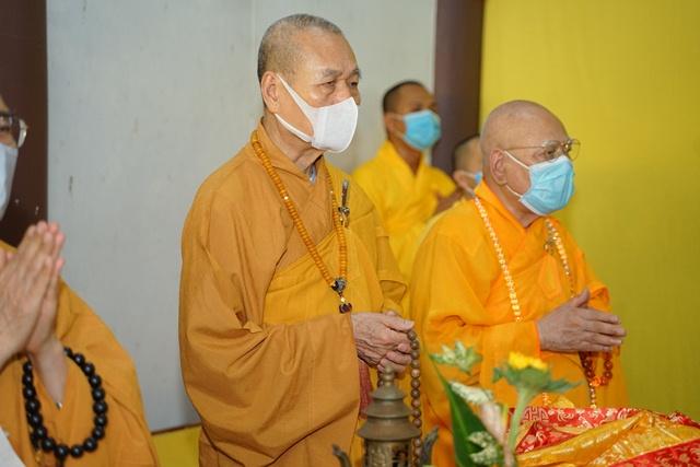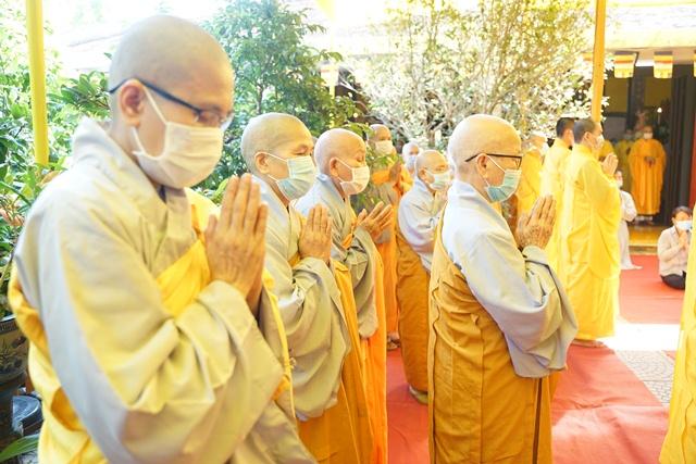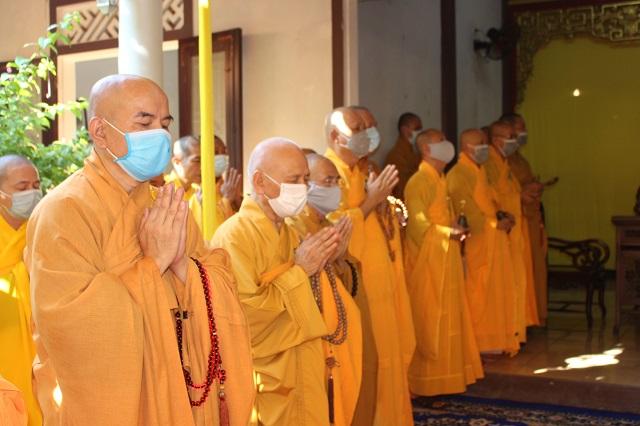 | Chư vị tôn túc, Tăng Ni đã đến hộ niệm, cầu nguyện trong nghi lễ tâm tang - Ảnh: PGH |