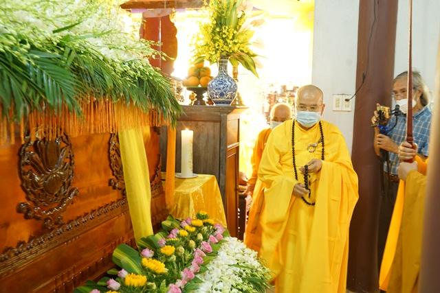 Lễ thỉnh thân tứ đại Trưởng lão Hòa thượng nhập kim quan được cử hành trang nghiêm theo nghi thức thiền môn, không nhạc lễ, với sự hộ niệm của chư tôn túc các tự viện, tổ đình và Tăng Ni các thế hệ học trò.