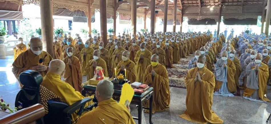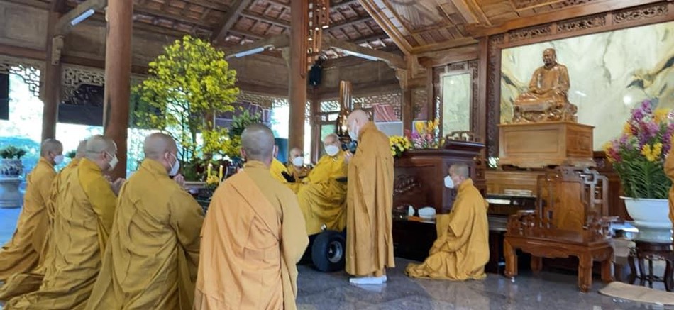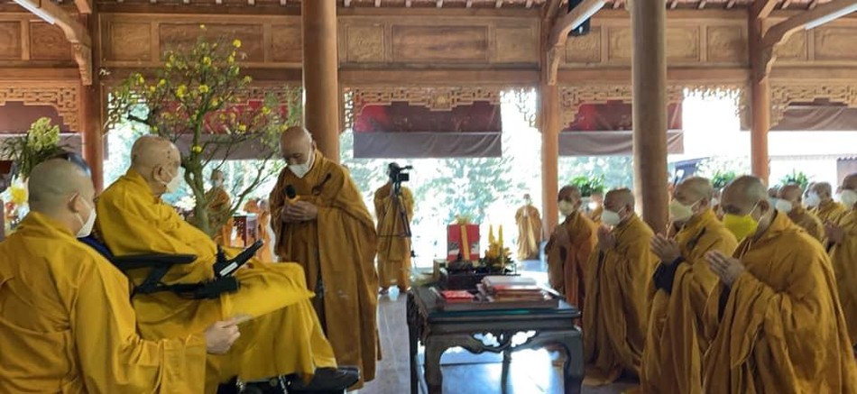 GNO - Ngày đầu năm mới Nhâm Dần, mùng 1 Tết (1-2-2022), Hòa thượng Thích Nhật Quang, Trưởng ban Trị sự GHPGVN tỉnh Đồng Nai cùng chư Tăng Ni thuộc thiền phái Trúc Lâm đã khánh tuế Trưởng lão Thiền sư Thích Thanh Từ.