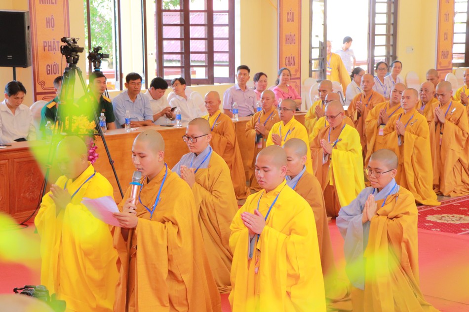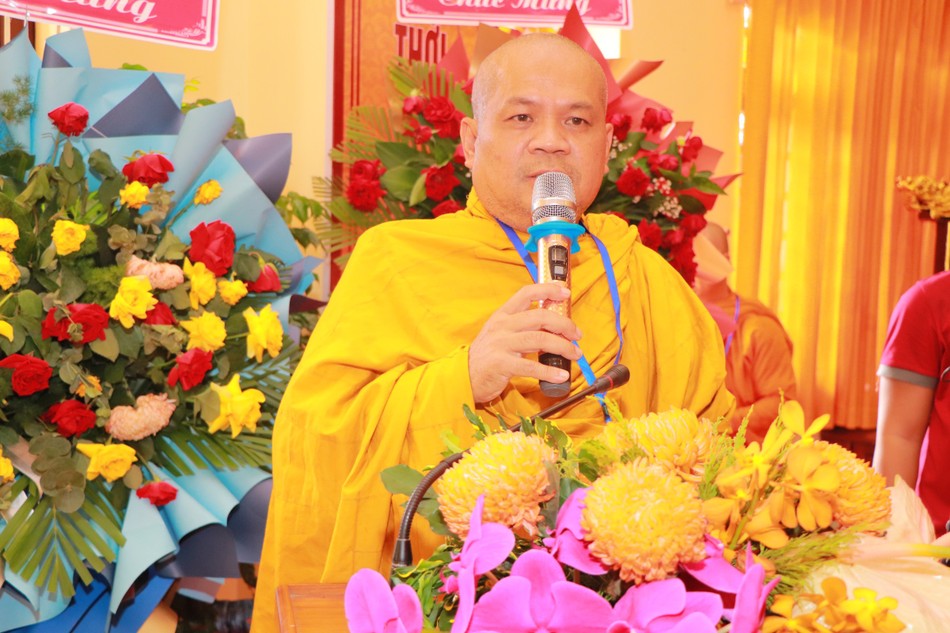 Tại buổi lễ, Đại đức Thích Thiện Thức, Ủy viên Hội đồng Trị sự, Phó ban kiêm Chánh Thư ký Ban Trị sự GHPGVN tỉnh thay mặt Ban Tổ chức báo cáo kết quả tổ chức Đại giới đàn trong những ngày qua.