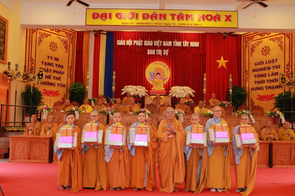 Dịp này, Ban Tổ chức cũng trao phần thưởng cho các giới tử Tăng, Ni xuất sắc trong phần thi tụng Luật Trường hàng; trao giấy tán dương công đức đến các Phật tử phát tâm hộ trì để Đại giới đàn thành công viên mãn.