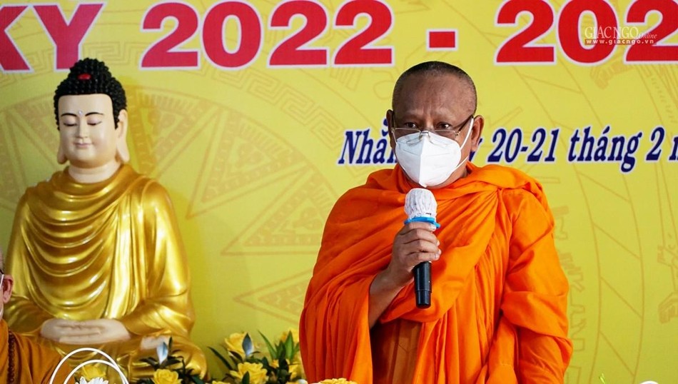 Đại diện Ban Trị sự GHPGVN tỉnh khóa VI (2017-2022), Hòa thượng Thích Huệ Tâm tuyên bố mãn nhiệm.