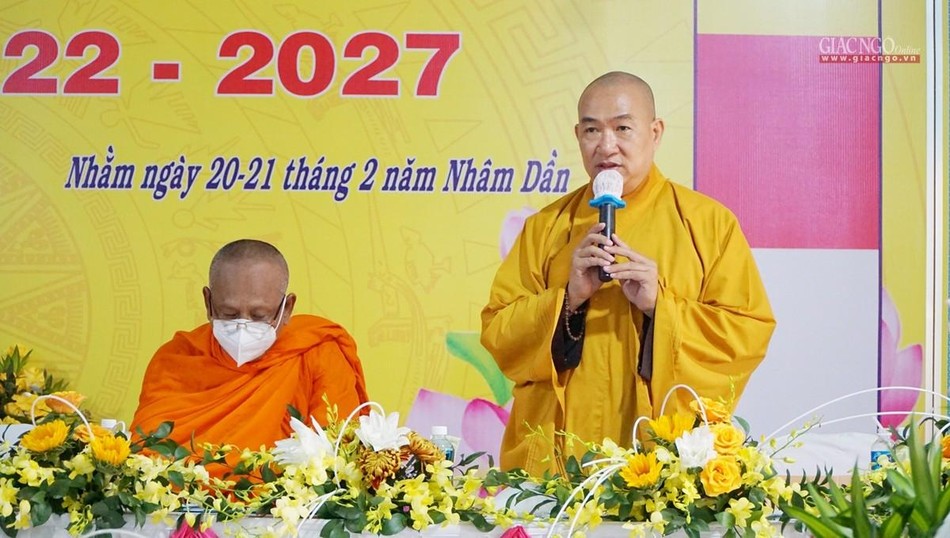 Tân Ban Trị sự GHPGVN tỉnh Tây Ninh, nhiệm kỳ 2022-2027 ra mắt và phát biểu nhận nhiệm vụ tại đại hội.