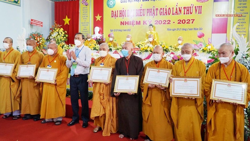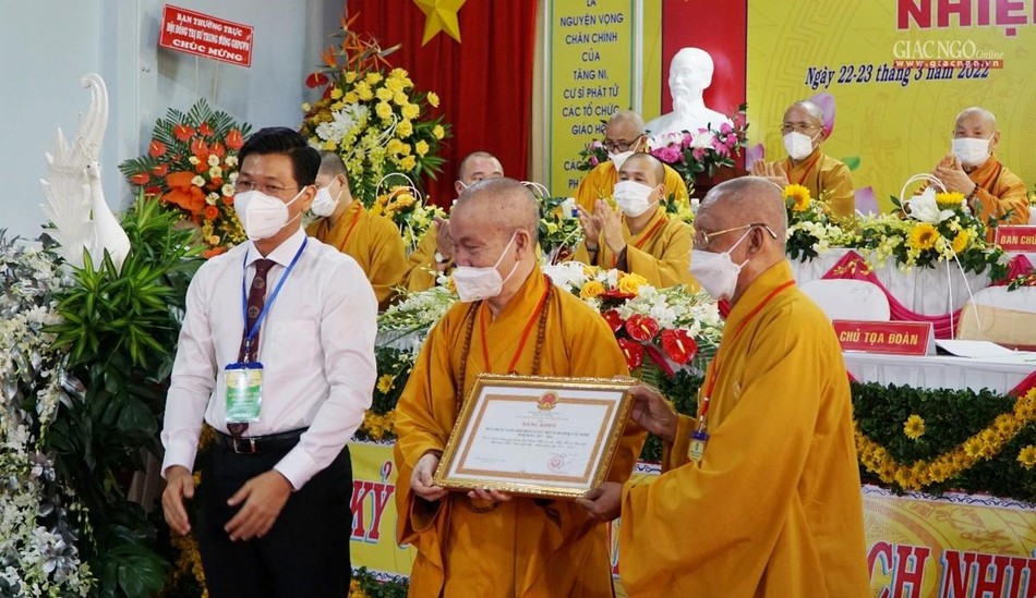 Ghi nhận đóng góp của chư tôn đức nhiệm kỳ qua, GHPGVN tặng Bằng tuyên dương công đức đến Ban Trị sự GHPGVN tỉnh; Ủy ban Nhân dân tỉnh tặng bằng khen đến Ban Trị sự tỉnh và 14 cá nhân; Ban Trị sự GHPGVN tỉnh tặng Bằng tuyên dương công đức đến 12 cá nhân.