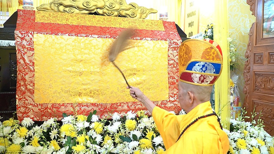 Sau lễ truy niệm, Hòa thượng Thích Thiện Tài, đương vi sám chủ đã tuyên pháp ngữ, cử hành nghi thức phất trần. Tiếp đó, môn đồ pháp quyến cung thỉnh lư hương, long vị, y bát và di ảnh, phụng thỉnh kim quan Hòa thượng đến đài hỏa táng tại Sơn Trang Tiên Cảnh (tỉnh Tây Ninh) để cử hành lễ trà-tỳ.