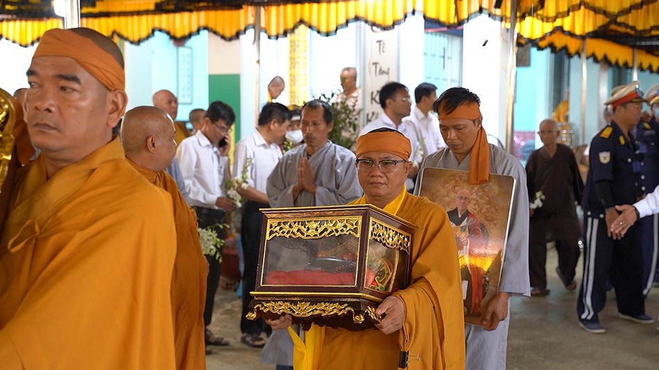 Hình ảnh cung thỉnh kim quan Hòa thượng Thích Huệ Tâm đến nơi trà-tỳ: