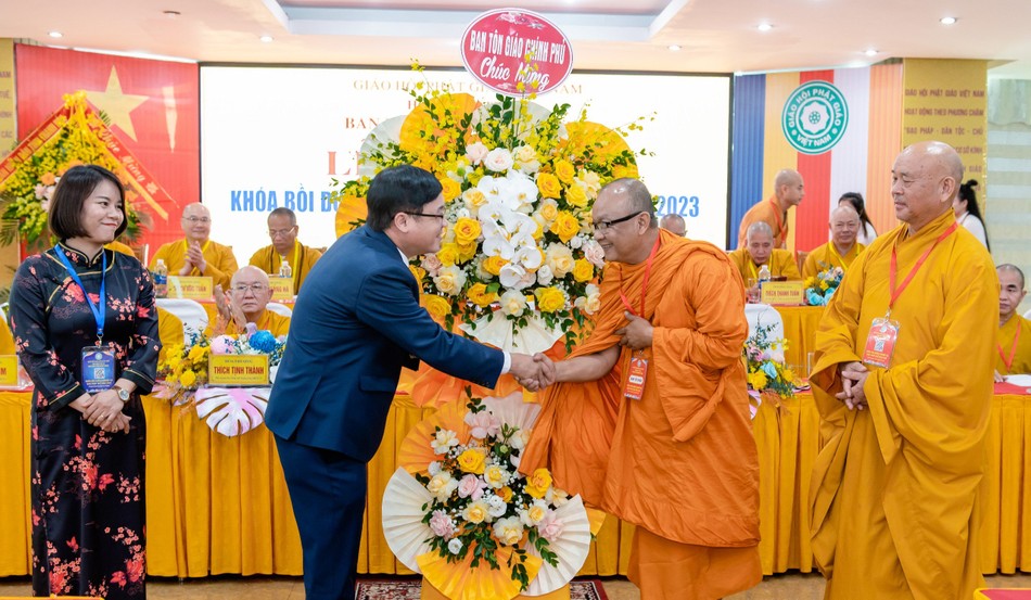 Đại diện các cơ quan, chính quyền có bà Nguyễn Thị Định, Trưởng phòng Thanh tra Pháp chế - Ban Tôn giáo Chính phủ; ông Đào Huy Cường, Phó phòng Phật giáo - Ban Tôn giáo Chính Phủ; ông Trần Quốc Huy, Tỉnh ủy viên, Giám đốc Sở Nội vụ tỉnh; bà Lê Thị Huyền, Phó Chủ tịch UBMTTQ tỉnh Thanh Hóa; ông Hồ Việt Anh, Trưởng ban Tôn giáo tỉnh, cùng đại diện các cấp chính quyền T.Ư và tỉnh Thanh Hóa.