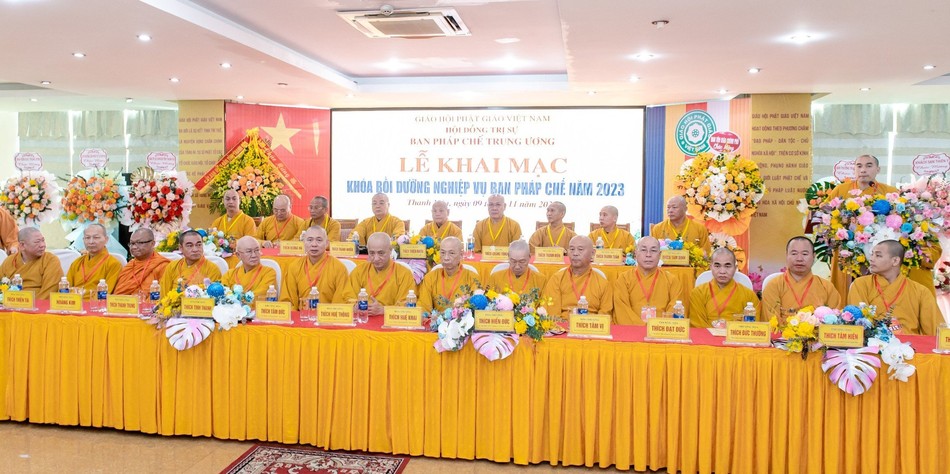 Hòa thượng Thích Huệ Thông, Phó Chủ tịch Hội đồng Trị sự, Trưởng ban Pháp chế T.Ư phát biểu khai mạc cho biết nhằm giúp thành viên Ban Pháp chế GHPGVN có trình độ, kỹ năng về nghiệp vụ chuyên môn pháp chế để tham mưu, góp ý, đề xuất lên lãnh đạo Giáo hội các cấp về lĩnh vực chuyên môn pháp chế. Được sự chấp thuận, cho phép của Ban Thường trực Hội đồng Trị sự GHPGVN, Ban Tôn giáo Chính phủ, Sở Nội vụ - Ban Tôn giáo TP.HCM, Sở Nội vụ - Ban Tôn giáo tỉnh Thanh Hóa, Ban Pháp chế T.Ư tổ chức khóa bồi dưỡng nghiệp vụ về pháp chế năm 2023 cho các thành viên Ban Pháp chế thuộc các cấp GHPGVN.