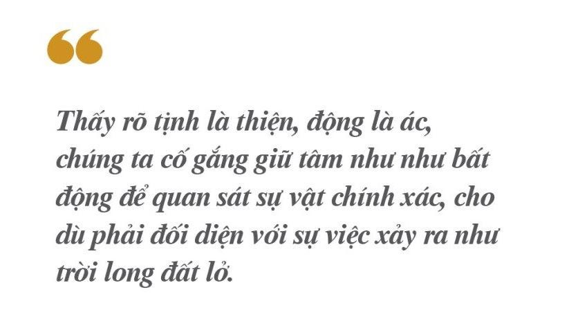Vì vậy, tu thế nào để không lệ thuộc ăn uống, tình cảm, không có gì ràng buộc được mình là bước thứ nhất mà chư Tổ sư đã thành tựu. Và mỗi người có cách tu khác nhau, nhưng tu thế nào cũng phải học giỏi, hiểu sâu là tìm được cái gốc, tức diệu lý và chứng đắc được pháp Không. Muốn vậy, phải quyết tâm mạnh để bứt phá được sức hút của Nhà lửa tam giới và đến được bãi đất trống.