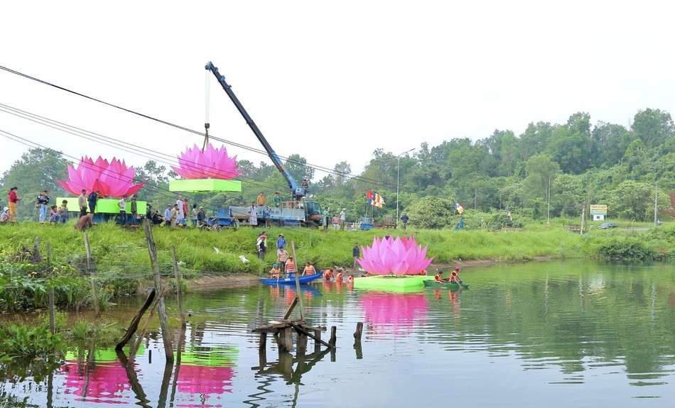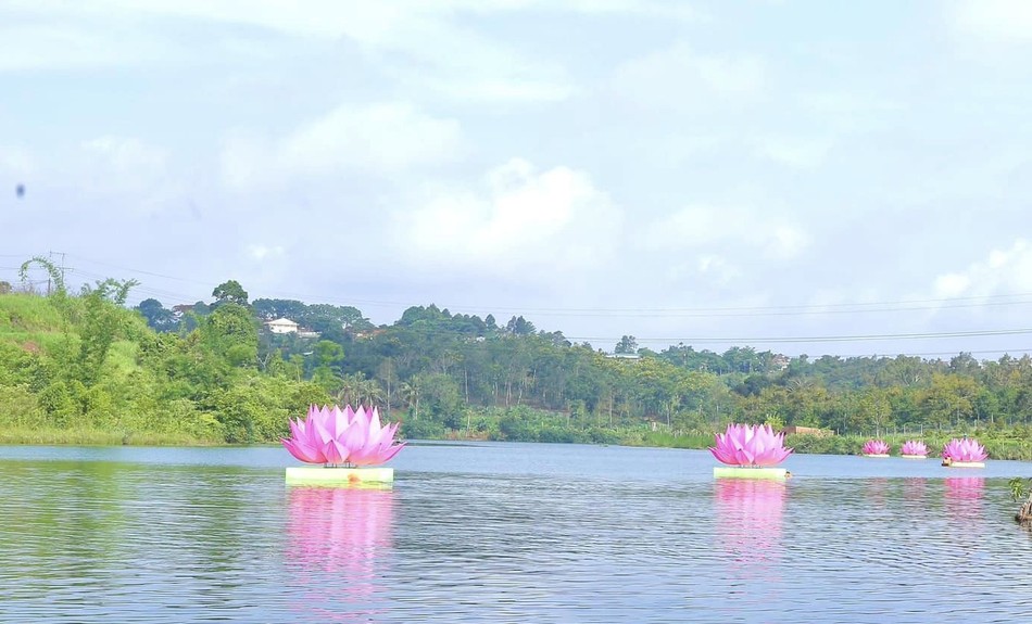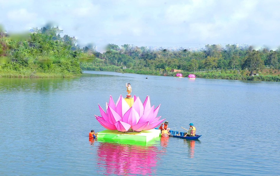 GNO - Sáng 3-4-Quý Mão (21-5-2023), chùa Phước Quang, X.Nhân Cơ, H.Đắk R'Lấp, tỉnh Đắk Nông đã hạ thủy 7 đóa sen hồng trên hồ Nhân Cơ để chuẩn bị cho các sự kiện kính mừng Phật đản Phật lịch 2567.