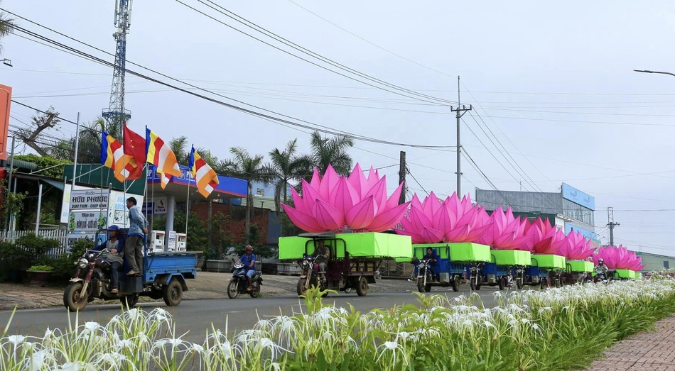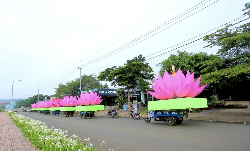 Đại đức Thích Chúc Tấn, trụ trì chùa Phước Quang cho phóng viên Báo Giác Ngộ biết việc thiết kế và hạ thủy 7 đóa sen trên hồ Nhân Cơ là hoạt động đầu tiên cho chuỗi hoạt động kính mừng Đại lễ Phật đản Phật lịch 2567 của chùa. Đây là lần đầu tiên những hoa sen khổng lồ xuất hiện ở vùng đất cao nguyên Đắk Nông kính mừng Phật đản.