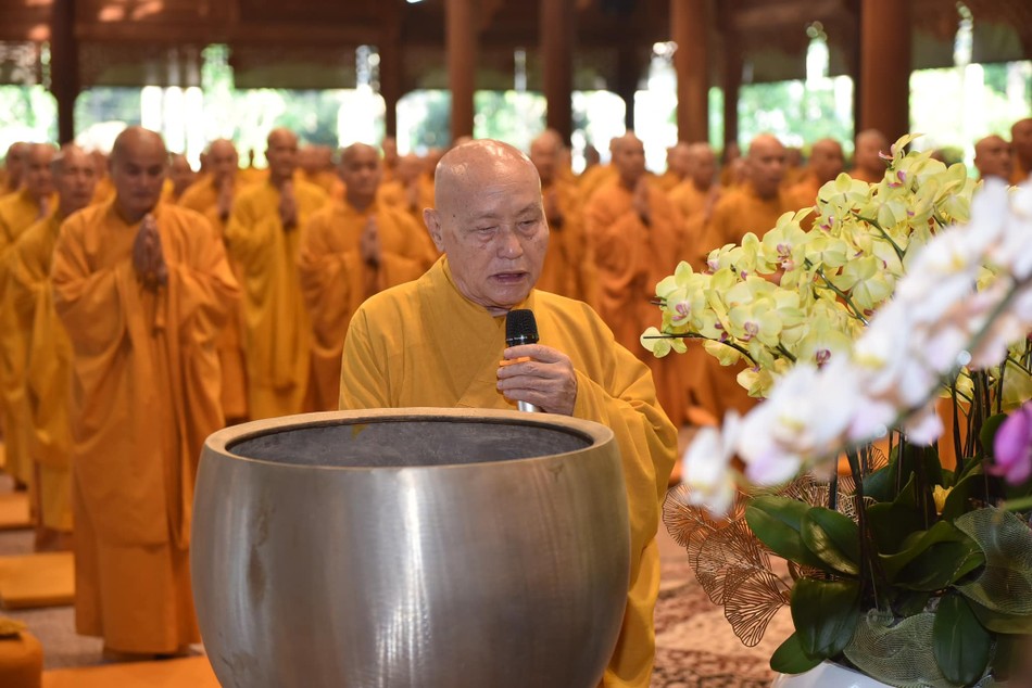 Theo đó, trong không khí trang nghiêm, chư Tăng tổ đình Thường Chiếu cùng chư tôn đức môn hạ đệ tử trong tông môn đã vân tập về thiền đường đảnh lễ Trưởng lão Hòa thượng Thích Thanh Từ - người đã có công khôi phục dòng Thiền Trúc Lâm Yên Tử, một lòng hướng dẫn chư Tăng Ni, Phật tử tu học theo Chánh pháp.