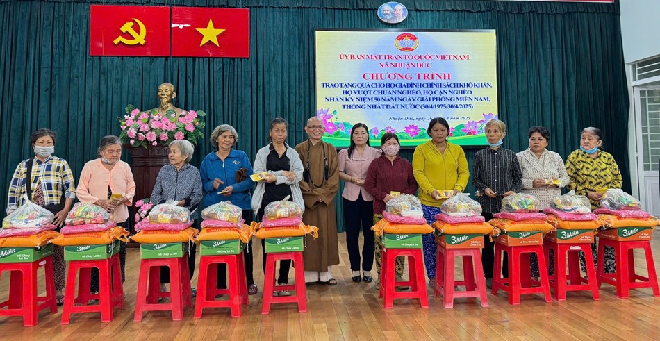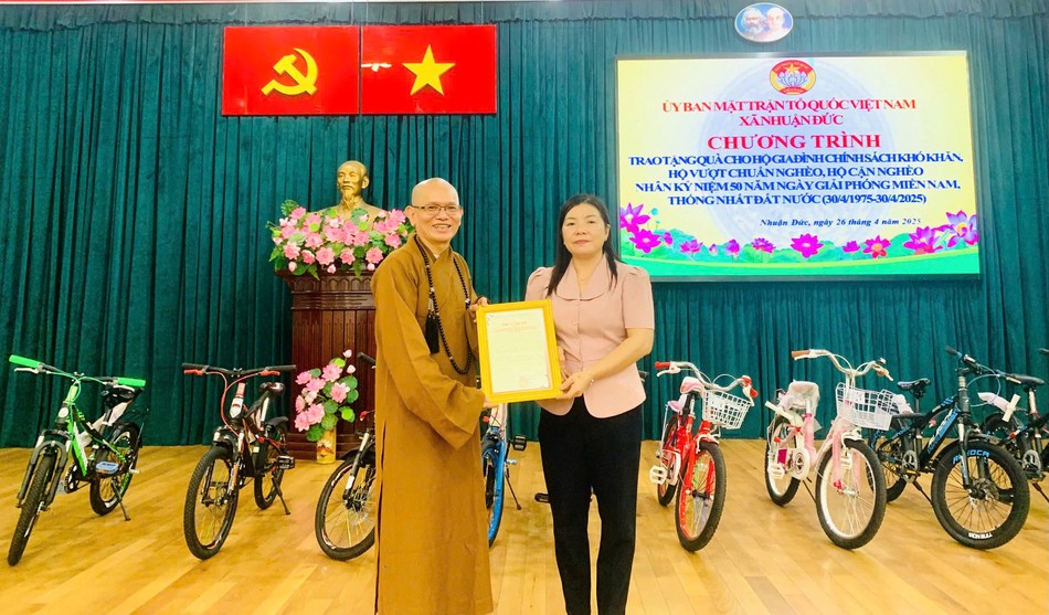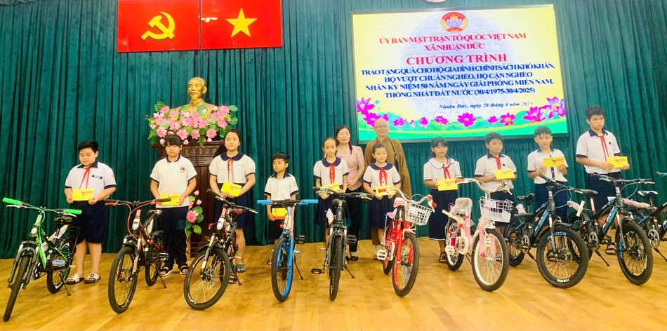 Được biết, mỗi phần quà trao tặng trị giá 650.000 đồng, gồm phong bì tiền mặt và các nhu yếu phẩm. Bên cạnh đó, phái đoàn còn hỗ trợ 10 chiếc xe đạp, mỗi chiếc trị giá 1.250.000 đồng và 10 phong bì mỗi phong bì 200.000 đồng cho các em học sinh hiếu học, nghèo vượt khó thuộc Trường PTTH Nhuận Đức 1 và Nhuận Đức 2.