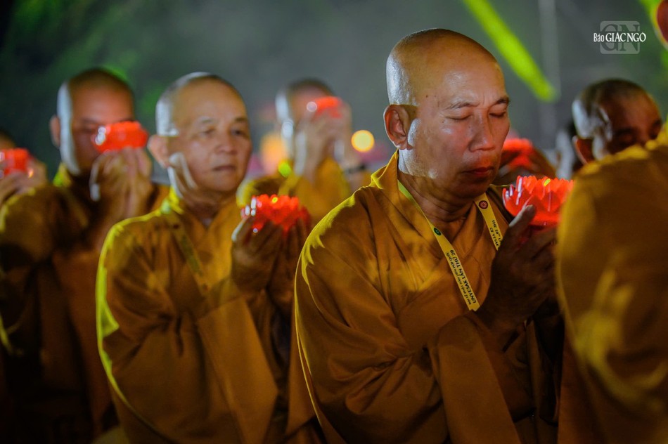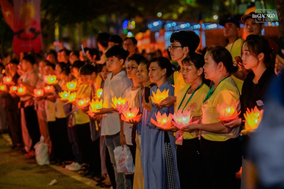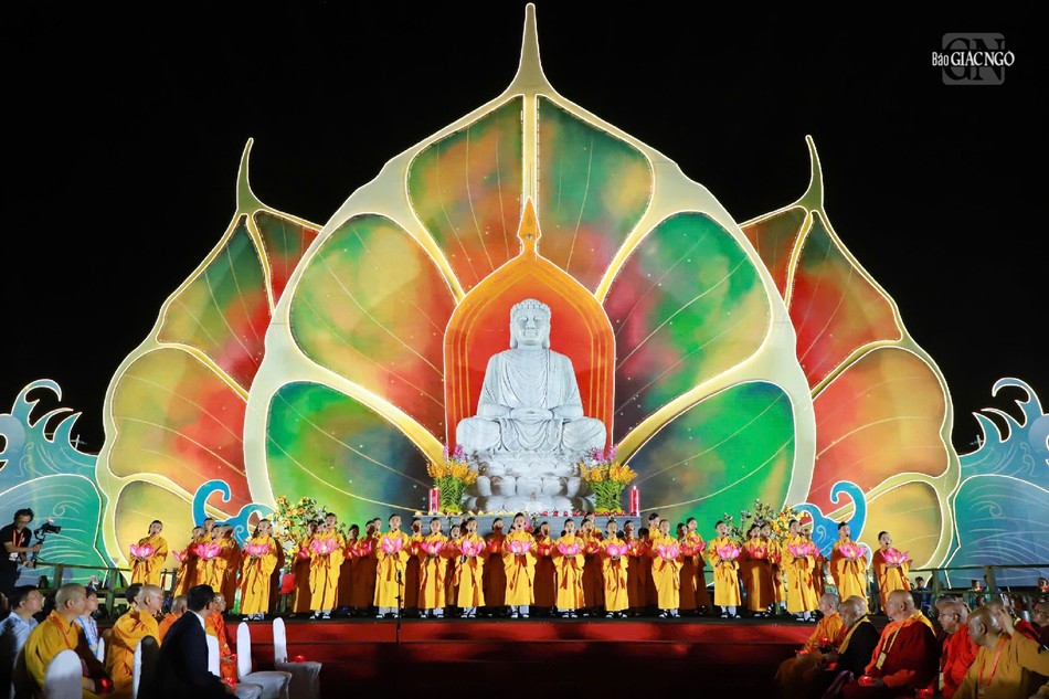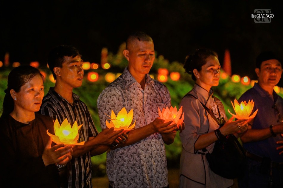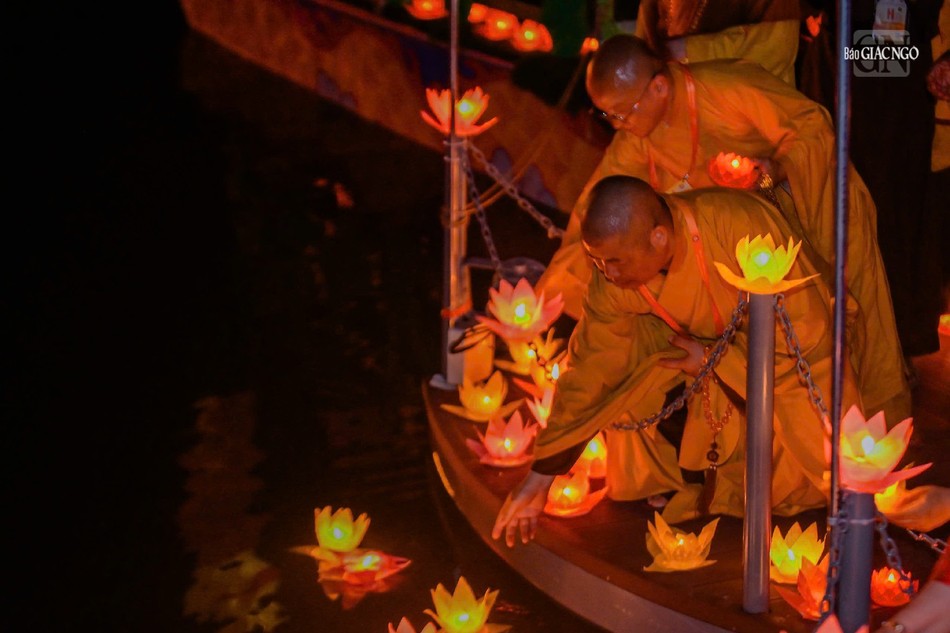 Hơn 35.000 hoa đăng được chư tôn đức thắp sáng lung linh với ước nguyện quốc thái dân an, thế giới hoà bình, chúng sinh an lạc.