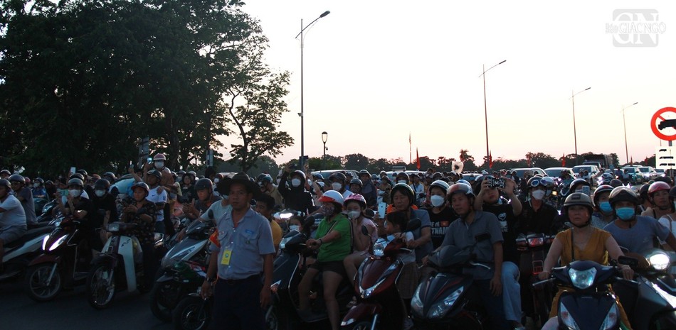 Trên những tuyến đường đoàn rước đi qua hàng nghìn người đứng hai bên đường để được đảnh lễ tôn tượng Đức Phật.