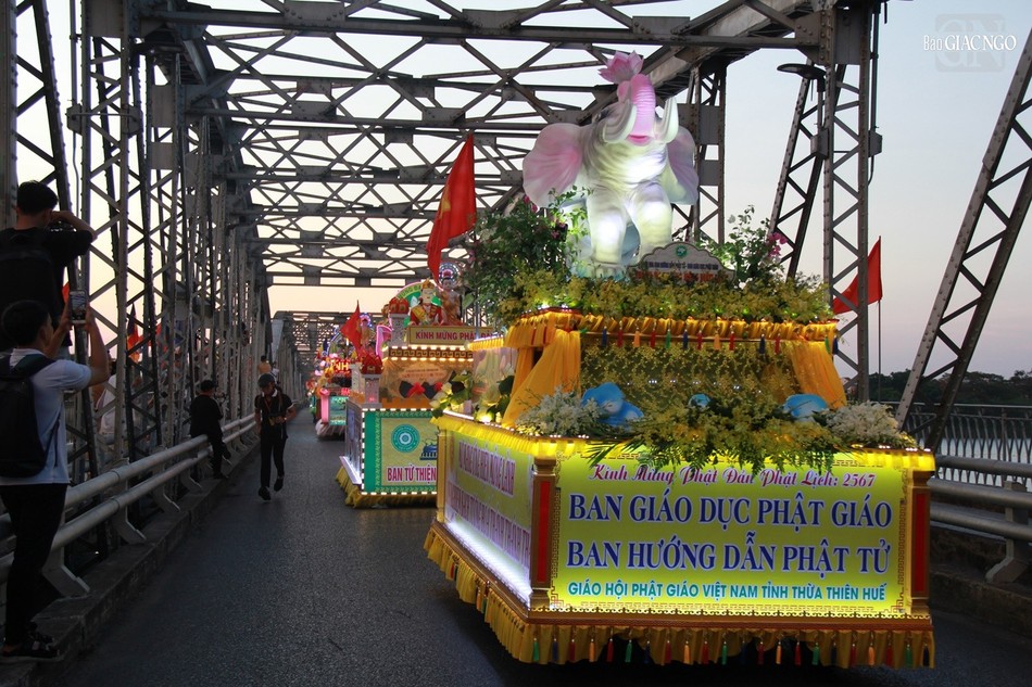 Đoàn xe rước Phật gồm 42 vị trí xe được Ban Tổ chức sắp xếp, trong đó có 32 chiếc xe hoa đi qua các trục đường chính tại TP.Huế như: cầu Gia Hội, đường Trần Hưng Đạo, cầu Trường Tiền, đường Lê Lợi, Điện Biên Phủ, Sư Liễu Quán, vào tam quan chùa Từ Đàm.