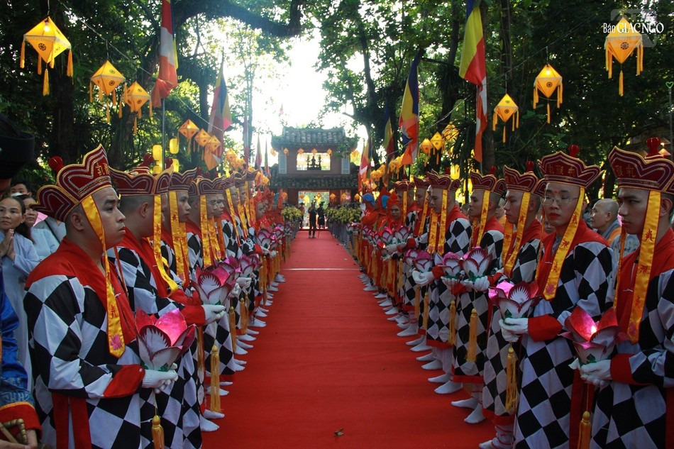 Đúng 17 giờ, chuông trống Bát-nhã trầm hùng được trổi liên hồi, Ban Nghi lễ cung thỉnh Hòa thượng chứng minh quang lâm lễ đài cử hành khóa lễ truyền thông theo nghi thức thiền môn cố đô.
