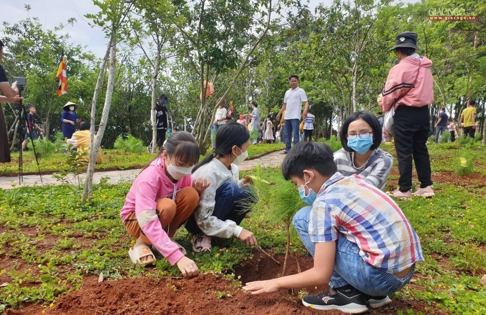 GNO - Sáng nay, mùng 8-4 Âm lịch, tại chùa Liên Hoa (Kiến Đức, Đắk Nông) đã tổ chúc chương trình trồng cây Kính mừng Phật đản Phật lịch 2566 (2022) dành cho các em thiếu nhi.