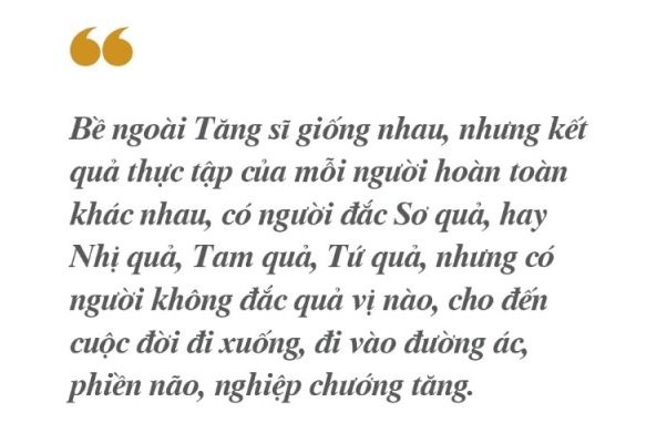 Nhờ chỉ tiếp xúc với Phật pháp, tầm nhìn của ngài được mở rộng thấy được điều mà mắt thường không thấy, biết được những gì mà tâm thường không biết. Với công phu hành trì miên mật pháp Phật trải qua mười năm dài, ngài có được cái thấy biết khác, đạo lực khác và việc làm khác. Bề ngoài Tăng sĩ giống nhau, nhưng kết quả thực tập của mỗi người hoàn toàn khác nhau, có người đắc Sơ quả, hay Nhị quả, Tam quả, Tứ quả, nhưng có người không đắc quả vị nào, cho đến cuộc đời đi xuống, đi vào đường ác, phiền não, nghiệp chướng tăng.