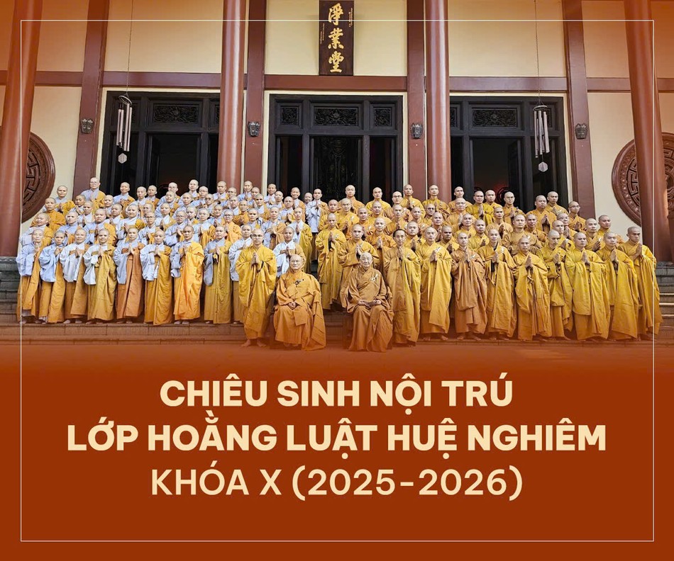 Ban Chủ nhiệm thông báo tuyển sinh lớp Hoằng Luật Huệ Nghiêm khóa X (2025-2026). Theo đó, thời gian, địa điểm, điều kiện và chương trình đào tạo như sau: