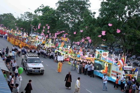 Hàng vạn Tăng Ni, Phật tử và du khách thập phương với đủ tất cả thành phần, từ Chư Tôn Thiền Đức cho đến quý vị nhân sĩ trí thức, các bô lão, các em học sinh, đoàn viên Phật tử… đều đã đến dự lễ Rước Phật, tạo cho Huế đêm 18/5 trở thành một ngày hội tâm linh đậm màu thiêng thiêng liêng và tưng bừng nhất từ trước đến nay.