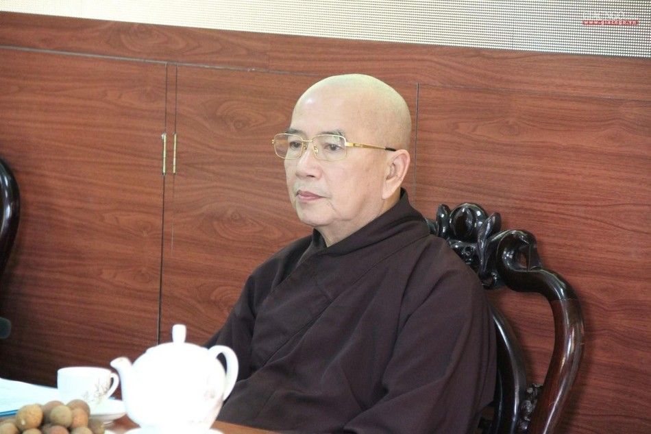 Hòa thượng Thích Đức Thanh, Ủy viên Thường trực Hội đồng Trị sự, Trưởng ban Trị sự GHPGVN tỉnh Thừa Thiên Huế chủ trì phiên họp toàn Ban Trị sự tỉnh nhà chiều 26-8-2022