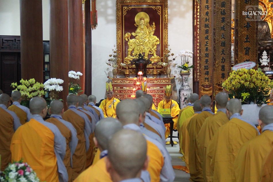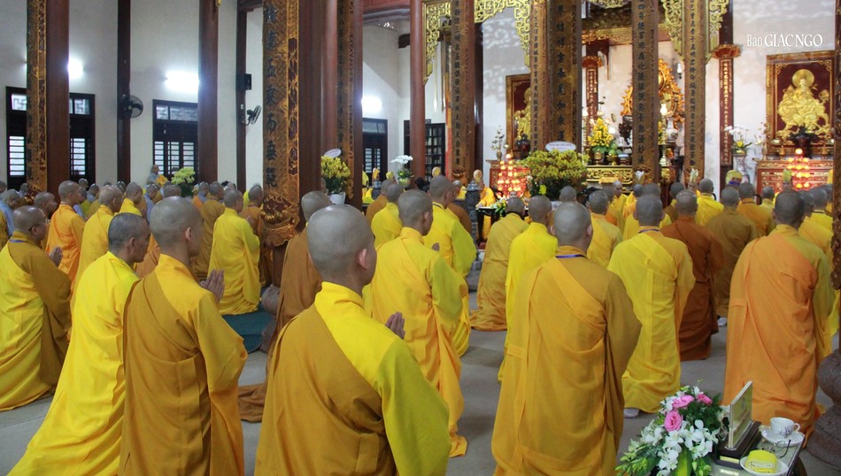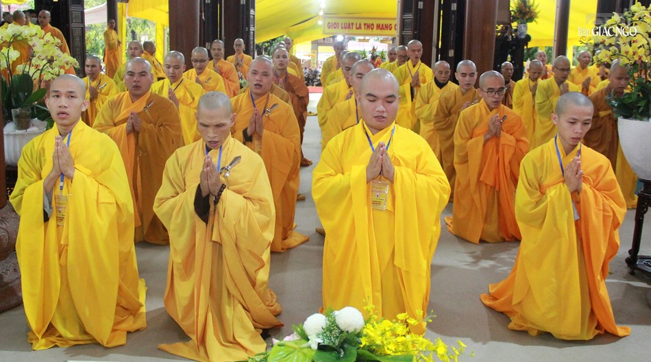 Sau nghi thức niệm Phật, đại diện các giới tử dâng lời phát nguyện: “Dù đối mặt với chông gai, thử thách vẫn sẽ luôn giữ hạnh tinh tấn, nguyện dõng mãnh, chuyên tâm nghiêm trì giới pháp đã lãnh thọ để thanh tịnh thân tâm, trang nghiêm bản thệ, xứng đáng là người kế thừa sự nghiệp Chánh pháp của ba đời mười phương chư Phật, để không phụ lòng mong mỏi, gửi gắm của chư tôn đức Tăng Ni”.
