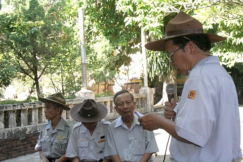 Huynh trưởng cấp Tín Tâm Quả Hà Văn Tám đọc điều lệ thi