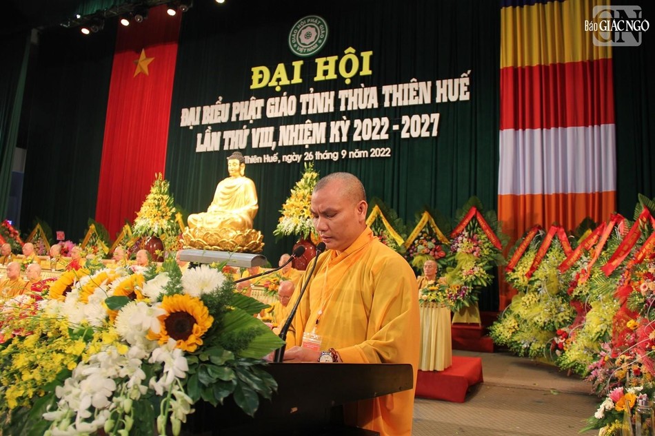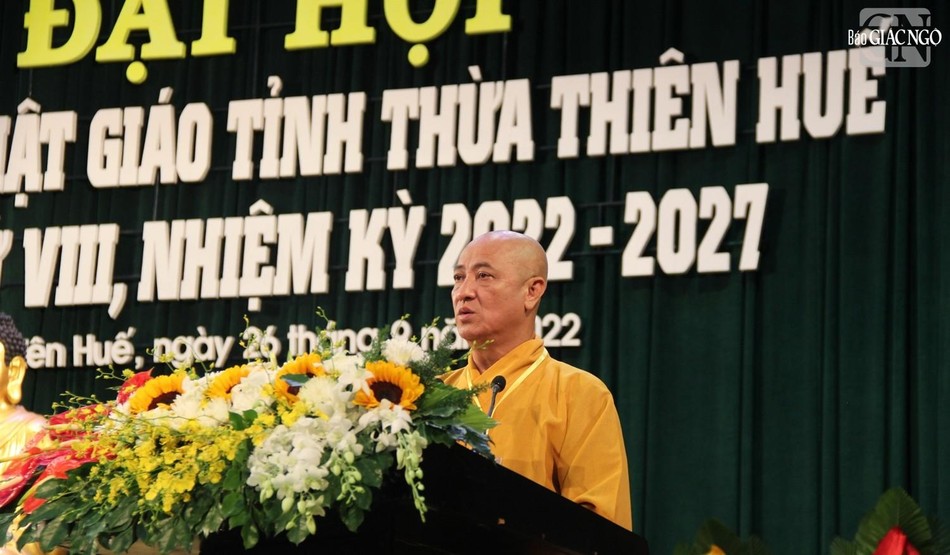 Tại hội trường, Đại biểu được nghe báo cáo tổng kết công tác Phật sự khóa VII, nhiệm kỳ (2017 - 2022) của Phật giáo tỉnh. Theo đó, trên địa bàn tỉnh Thừa Thiên Huế hiện tổng số 418 tự viện có Tăng Ni thường trú (3 ngôi quốc tự, 261 chùa Tăng, 157 chùa Ni), 330 Niệm Phật đường, có 6 chùa được công nhận di tích cấp quốc gia, số lượng chư Tăng gồm 825 vị và 584 vị Ni.