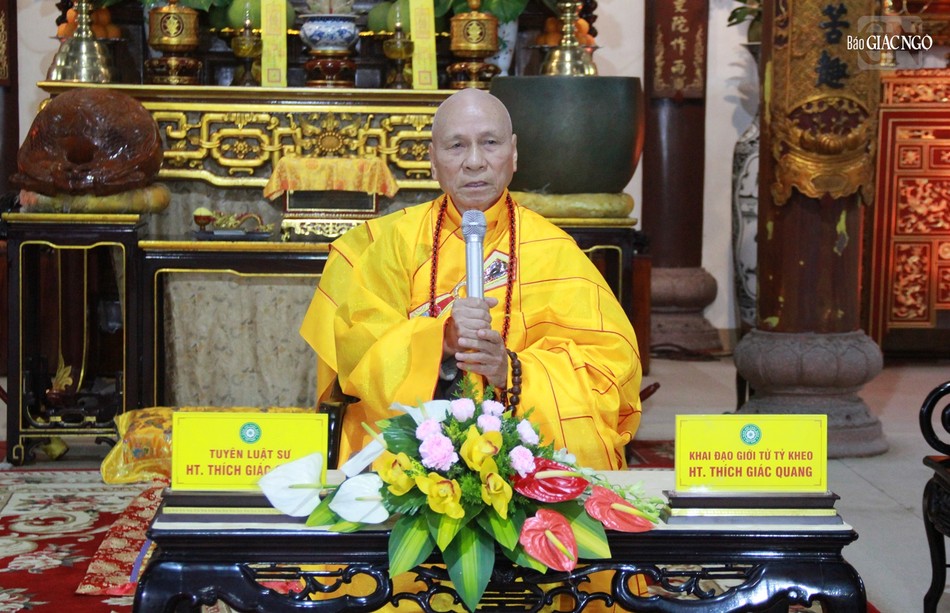Trước toàn thể giới tử phát tâm cầu thọ giới pháp, Trưởng lão Hòa thượng Thích Giác Quang, Tuyên Luật sư đã khái quát về 250 giới của Tứ Phần luật mà các giới tử sẽ được lãnh thọ.