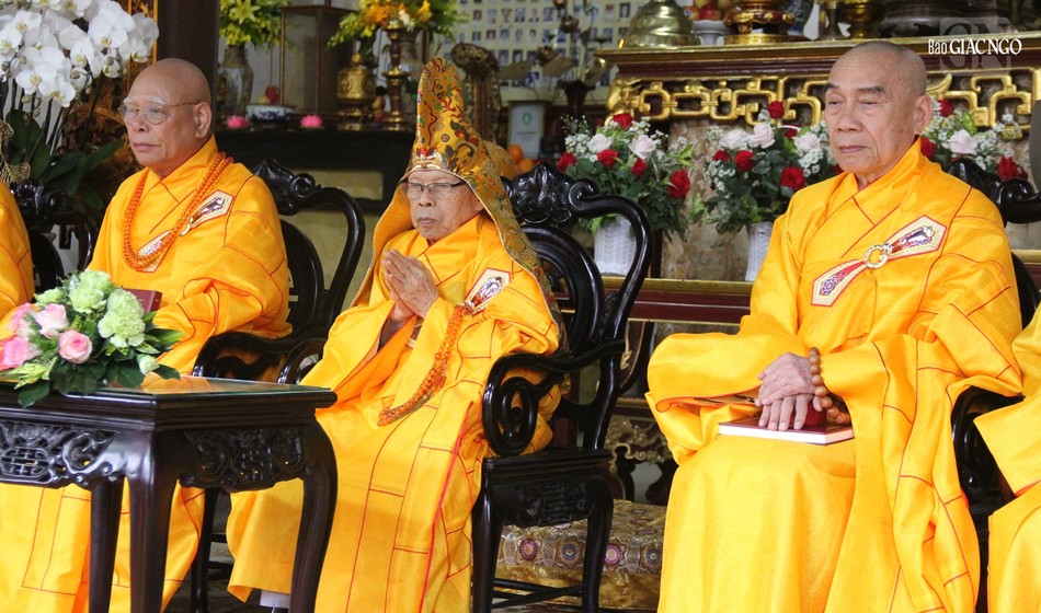 GNO - Hôm nay, ngày 29-12, Ban Kiến đàn thành kính cung nghinh Trưởng lão Hòa thượng Thích Giác Quang, Phó Pháp chủ GHPGVN, Tuyên Luật sư Đại giới đàn Mật Hiển quang lâm giới trường tại tổ đình Từ Đàm khai đạo giới tử Tỳ-kheo.