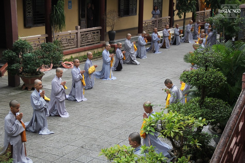 Tối nay, các giới tử Tỳ-kheo hành trì nghi thức sám hối, trì tụng luật Tỳ-ni, Sa-di thập giới, Cảnh sách văn, Luật Oai nghi dưới sự chứng minh và giám sát của Ban Kiến đàn.