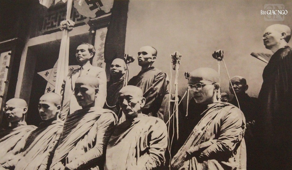 Đại lão Hòa thượng Thích Trí Quang phát biểu tại chùa Từ Đàm năm 1963 |