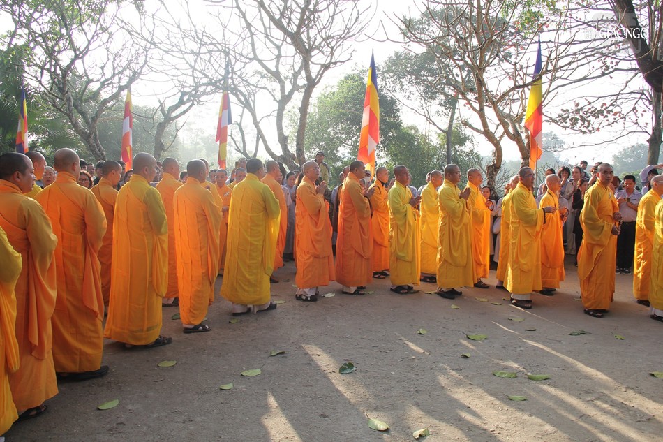 Đúng 8 giờ 30, kim quan Trưởng lão Hòa thượng được nhập bảo tháp trong khuôn viên chùa Vạn Phước. Chư tôn đức Tăng Ni, quan khách và Phật tử đã xúc động rải hoa tiễn biệt một vị tôn túc Phật giáo cố đô.