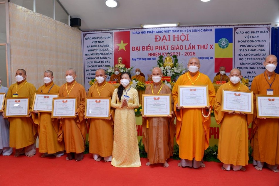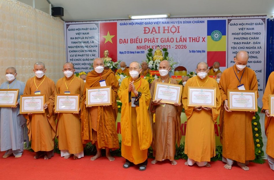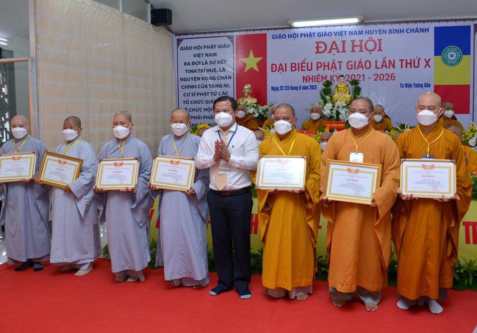 Dịp này, Ban Trị sự Phật giáo TP.HCM đã trao Bằng tuyên dương công đức, Bằng công đức; Ủy ban MTTQVN TP.HCM và UBND huyện Bình Chánh đã trao Giấy khen đến tập thể, các cá nhân thuộc các đơn vị Phật giáo huyện đã có những đóng góp tích cực cho các hoạt động Phật sự tại địa phương.