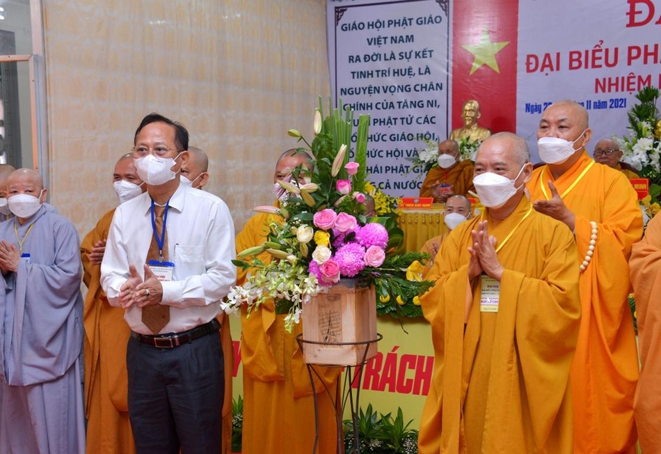 Các cơ quan TP.HCM bà Phan Kiều Thanh Hương, Phó Chủ tịch Ủy ban MTTQVN TP.HCM; ông Nguyễn Duy Tân, Phó Giám đốc Sở Nội vụ, Trưởng ban Tôn giáo TP.HCM; ông Nguyễn Trung Thành, Trưởng phòng Dân tộc - Tôn giáo Ban Dân vận Thành ủy; ông Trần Văn Nam, Thành ủy viên, Bí thư Huyện ủy Bình Chánh, cùng đại diện lãnh đạo các cơ quan, đoàn thể thuộc huyện, Phật tử tiêu biểu đến tham dự đại hội.