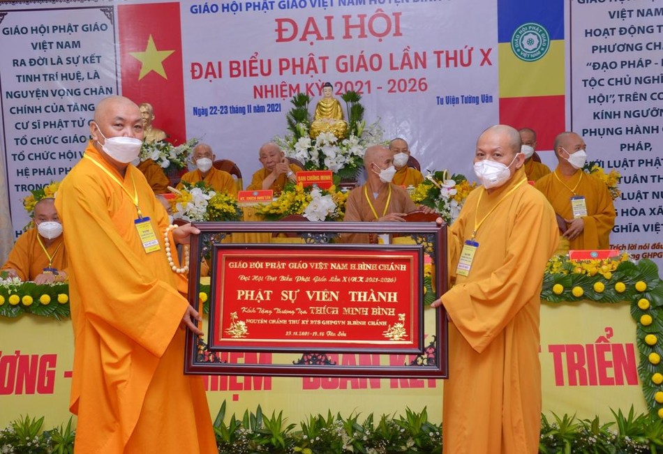 Sau khi Ban Trị sự Phật giáo huyện nhiệm kỳ IX tuyên bố mãn nhiệm, Thượng tọa Thích Huệ Minh đã trình đến đại hội danh sách nhân sự dự kiến; Hòa thượng Thích Minh Thông đã thay mặt Ban Thường trực Phật giáo TP.HCM lấy ý kiến biểu quyết của đại biểu, toàn thể đại biểu hiện diện thống nhất thông qua thành phần nhân sự của Ban Trị sự Phật giáo huyện Bình Chánh nhiệm kỳ 2021-2026.