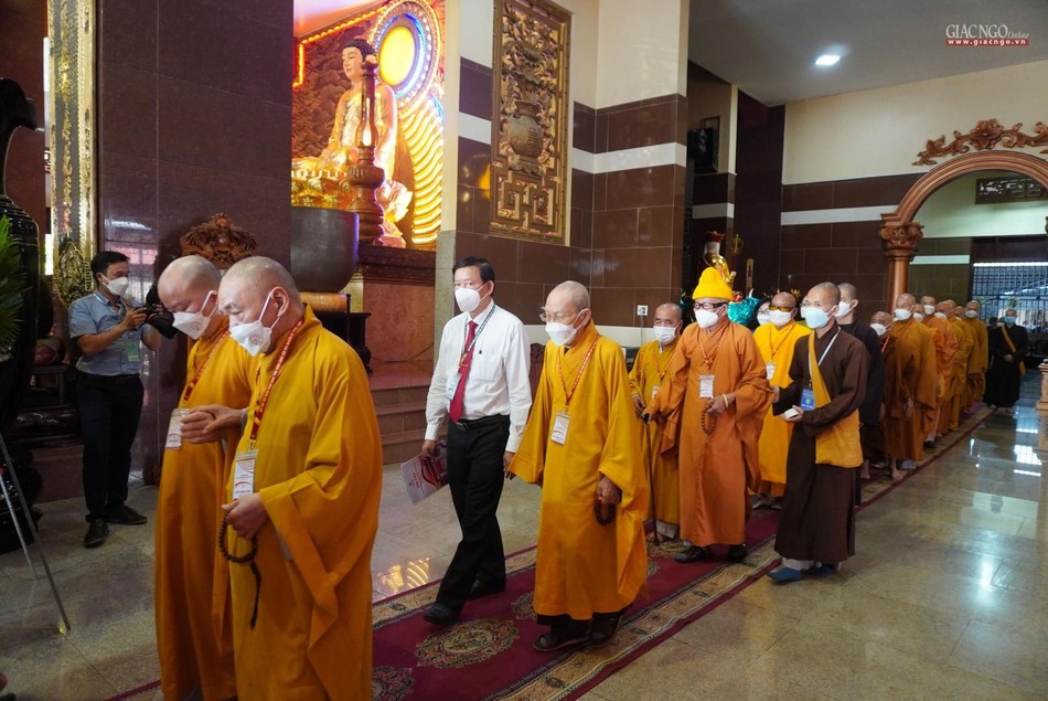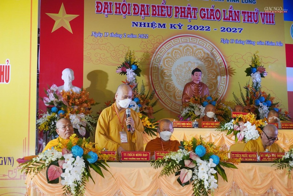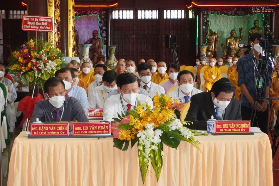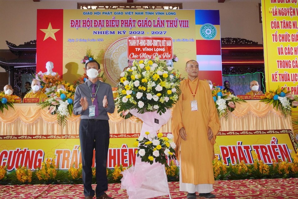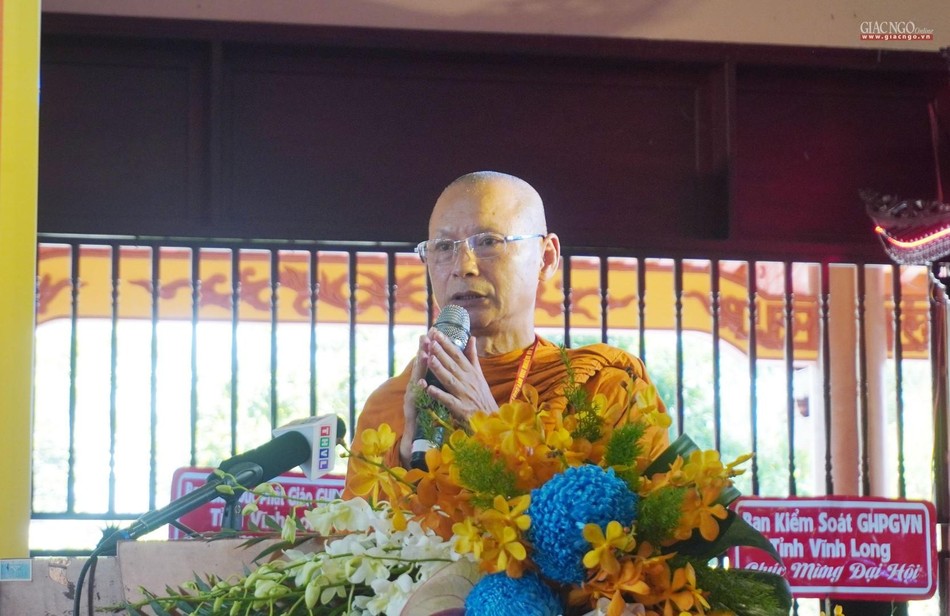 Phát biểu đại diện chính quyền tại đại hội, ông Bùi Văn Nghiêm đánh giá những năm qua dưới sự hướng dẫn của Hội đồng Trị sự, sự phối hợp hỗ trợ của các cấp chính quyền, Ban Trị sự GHPGVN tỉnh Vĩnh Long đã hướng dẫn Tăng Ni và Phật tử sinh hoạt đúng pháp luật, Hiến chương GHPGVN.