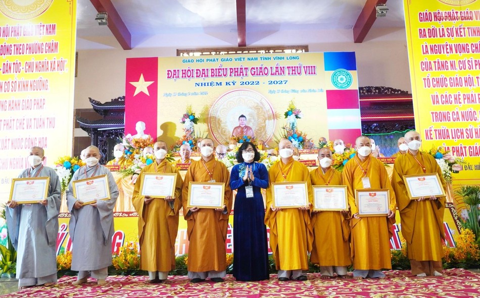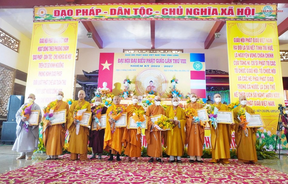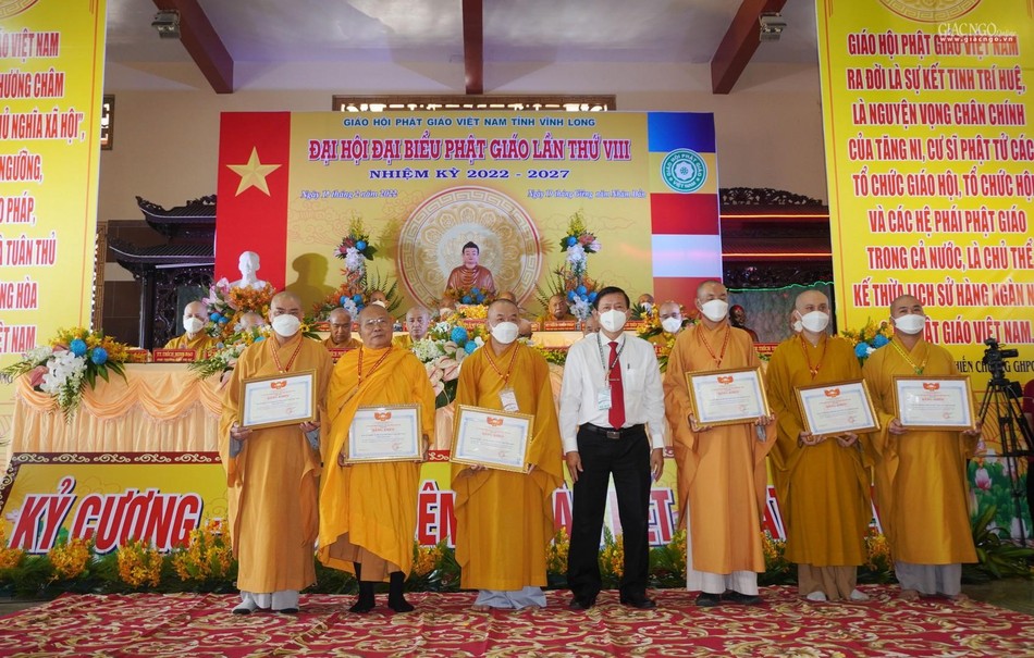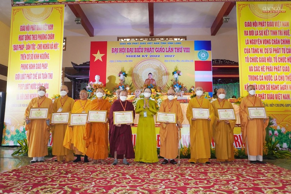 Ghi nhận những đóng góp của toàn thể Tăng Ni Phật tử tỉnh Vĩnh Long trong nhiệm kỳ qua; Hội đồng Trị sự đã trao tặng Bằng tuyên dương công đức cho 1 tập thể, 18 cá nhân hoàn thành xuất sắc công tác Phật sự nhiệm kỳ 2017-2022; 5 tập thể và 10 cá nhân nhận Bằng khen của UBND tỉnh; Ủy ban MTTQVN tỉnh Vĩnh Long cũng trao Bằng khen đến 5 tập thể và 10 cá nhân có thành tích xuất sắc trong "Phong trào phụng đạo, yêu nước, xây dựng khối đại đoàn kết toàn dân tộc".