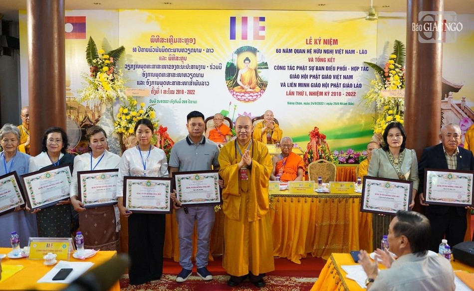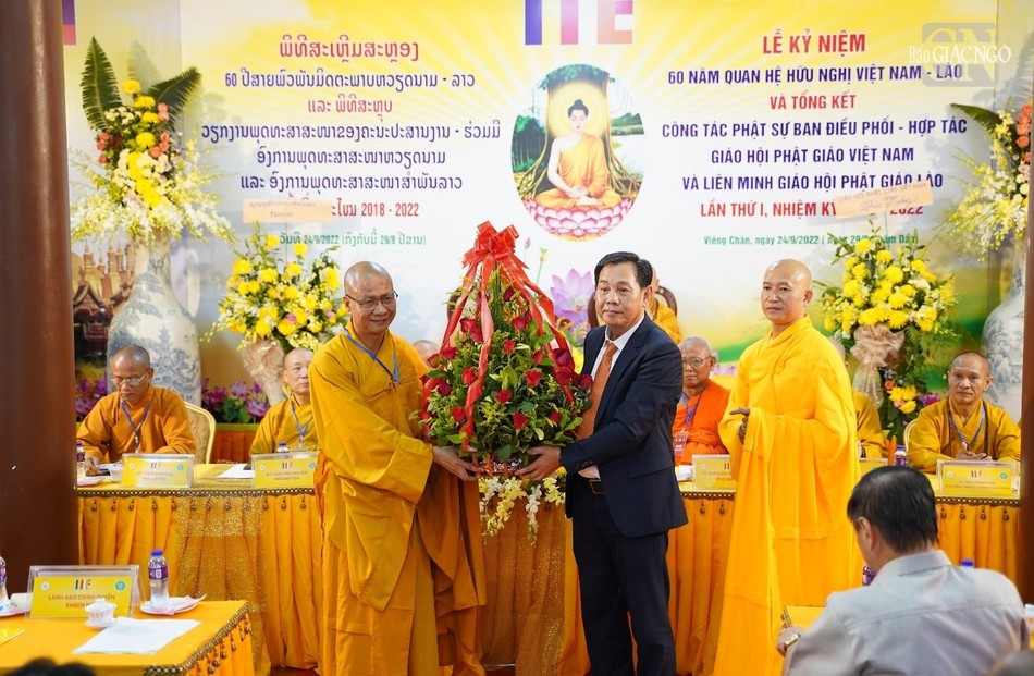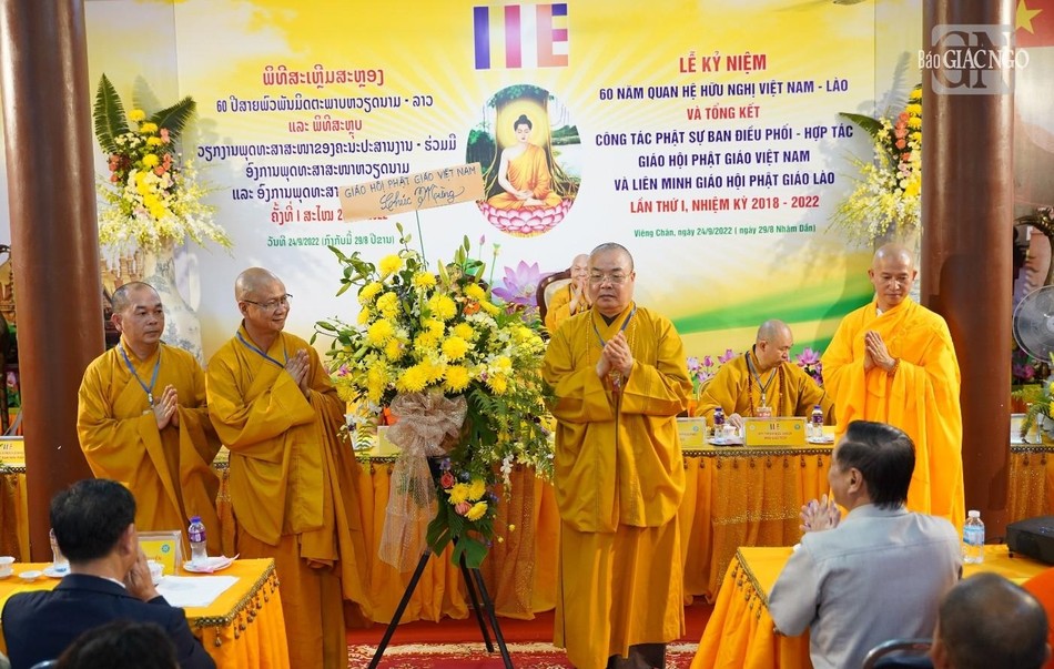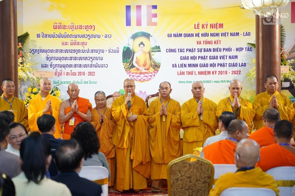 GNO - Sáng 24-9, tại chùa Phật Tích - thủ đô Viêng Chăn, Trung ương GHPGVN và Trung ương Liên minh Giáo hội Phật giáo Lào đã tổ chức kỷ niệm “Năm Đoàn kết hữu nghị Việt Nam - Lào, Việt Nam - Lào 2022”, tổng kết hoạt động Phật sự Ban Điều phối GHPGVN tại Lào giai đoạn 2018-2022.