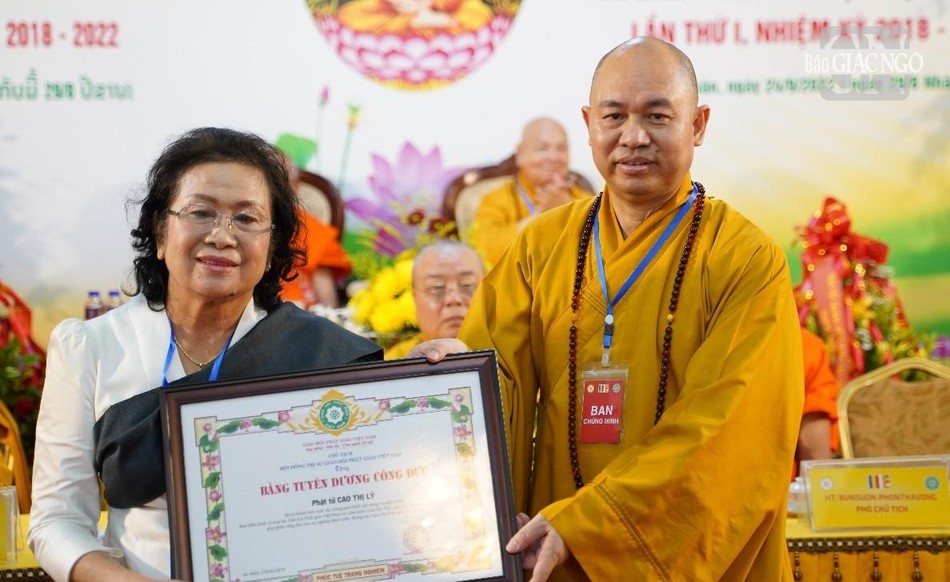 Thượng tọa Thích Đức Thiện tặng Bằng tuyên dương công đức của GHPGVN |