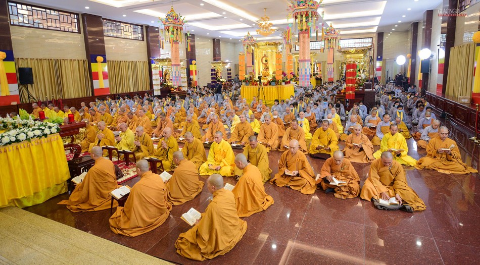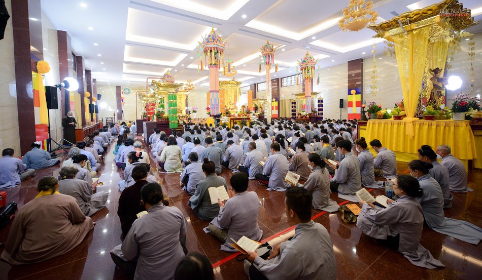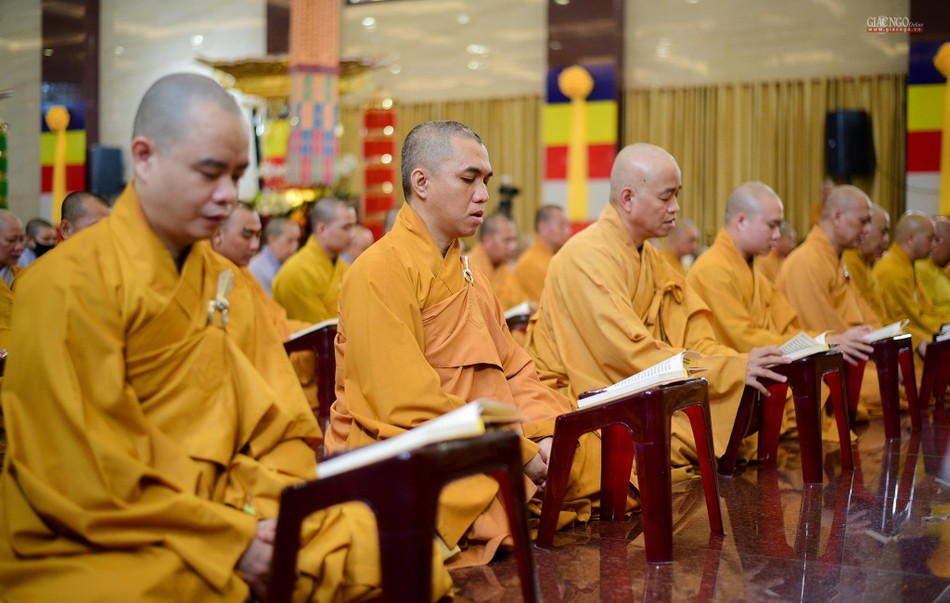 Theo đó, đạo tràng trang nghiêm với thời pháp thoại "Hướng về chư hương linh tử vong trong đại dịch Covid-19" của Thượng tọa Thích Quang Thạnh, Phó ban Trị sự kiêm Trưởng ban Giáo dục Phật giáo TP.HCM chia sẻ với hội chúng về những mất mát lớn, đau thương vẫn còn đang âm ỉ trong lòng người ở lại.