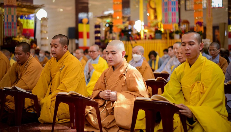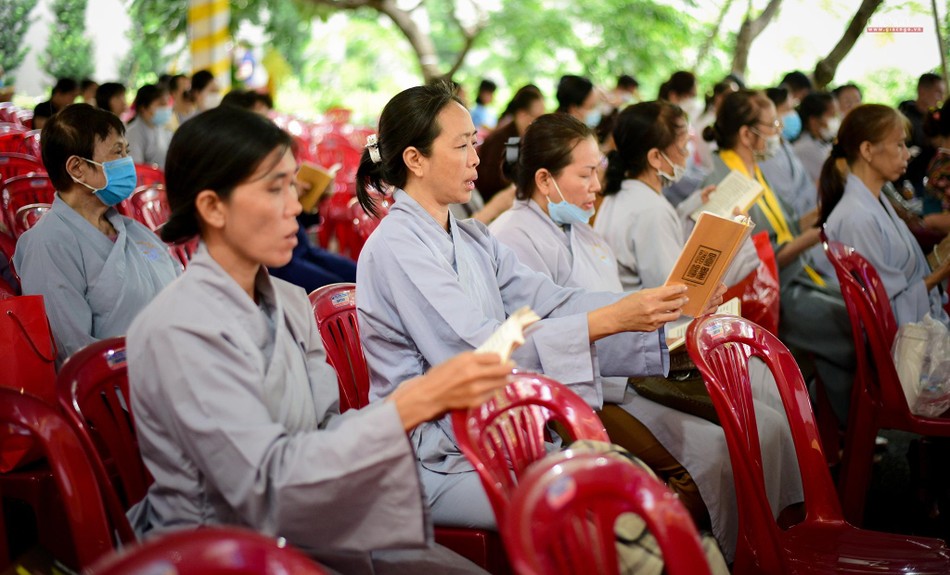 Tiếp đó, chư tôn đức Tăng Ban Trị sự GHPGVN TP.HCM, Ban Nghi lễ, Ban Trị sự TP.Thủ Đức, chư Tăng Ni và Phật tử các cơ sở tự viện tại đơn vị GHPGVN quận: Tân Phú, Bình Thạnh, Phú Nhuận, Gò Vấp tham gia khóa lễ trì tụng kinh Địa Tạng.